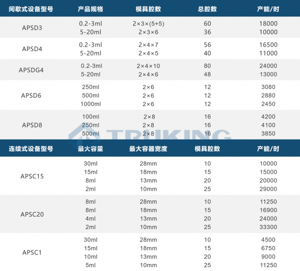 Ø 设备可生产容器的形状和大小尺寸非常丰富,容器容量的范围从0.5毫升直至1升;
